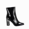 Mot. aulinukai su kulnu, juodos spalvos, kvadratinė batų nosis, užsegimas užtrauktuku, elegantiškas dirbtinės odos audinys.