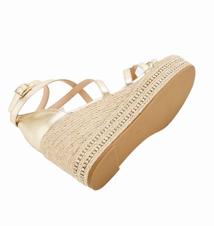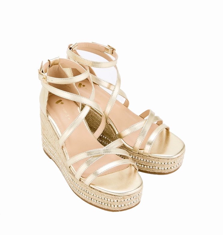 Mot. basutės, auksinės spalvos, apvali atvira batų nosis, užsegimas sagtimi.