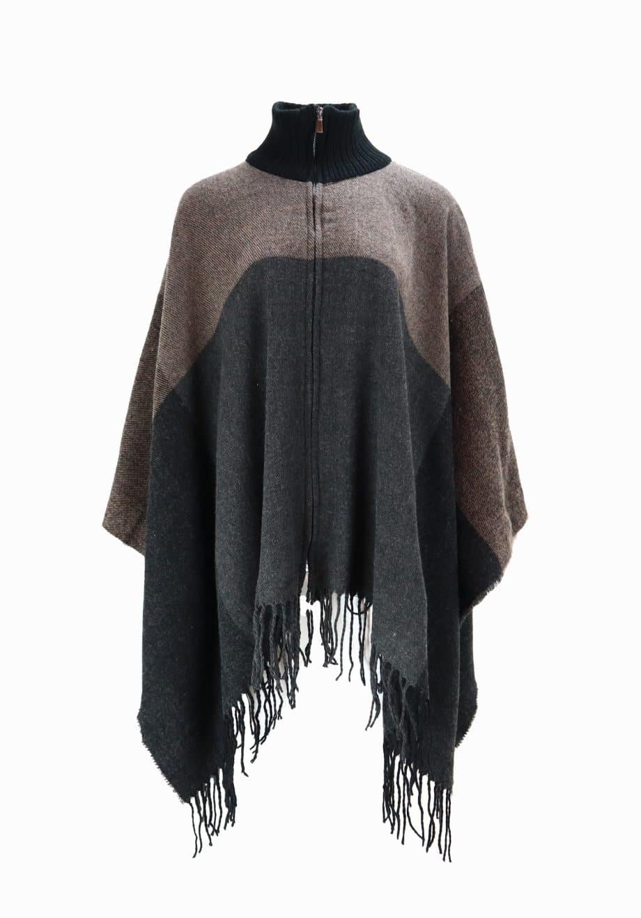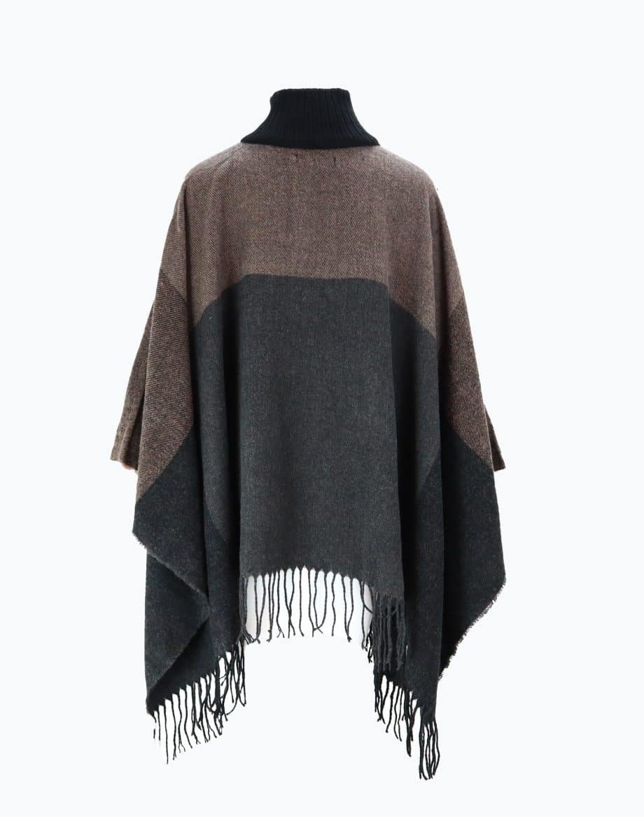 Mot. pončas, juodos spalvos, aukštu kaklu, užtraukiamas užtrauktuku, megzto rašto, vieno dydžio.