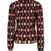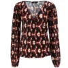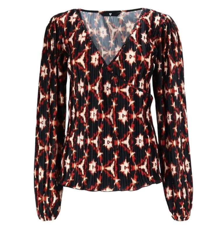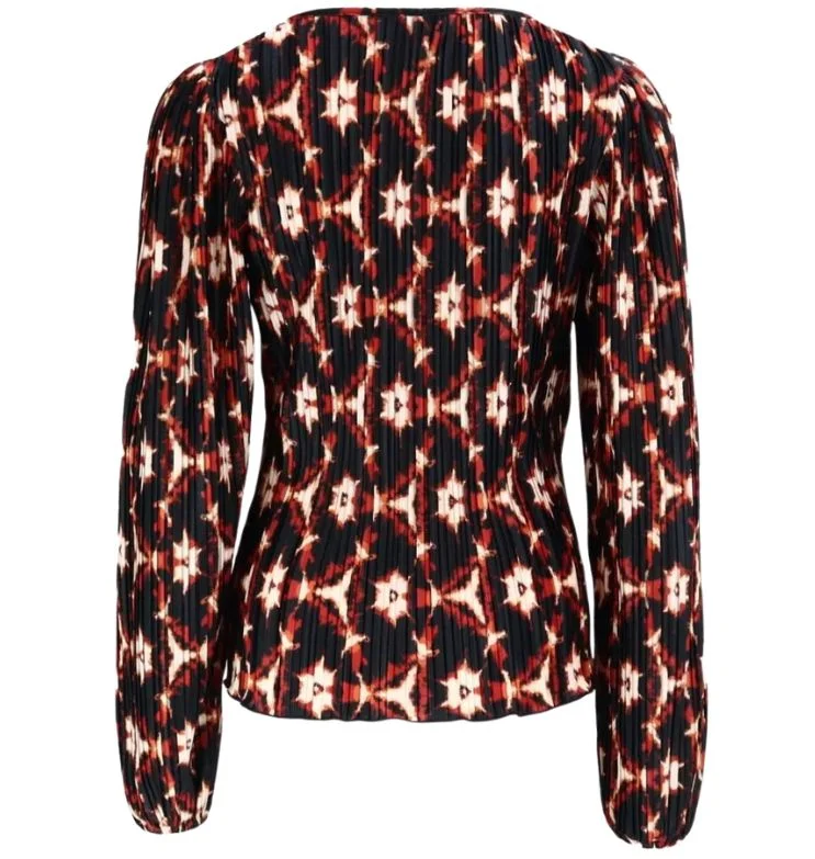 Mot. palaidinė, juodos/ rudos spalvos, margo rašto, plačios ilgos rankovės, gili V formos iškirptė, laisvo kirpimo, lengva medžiaga.