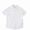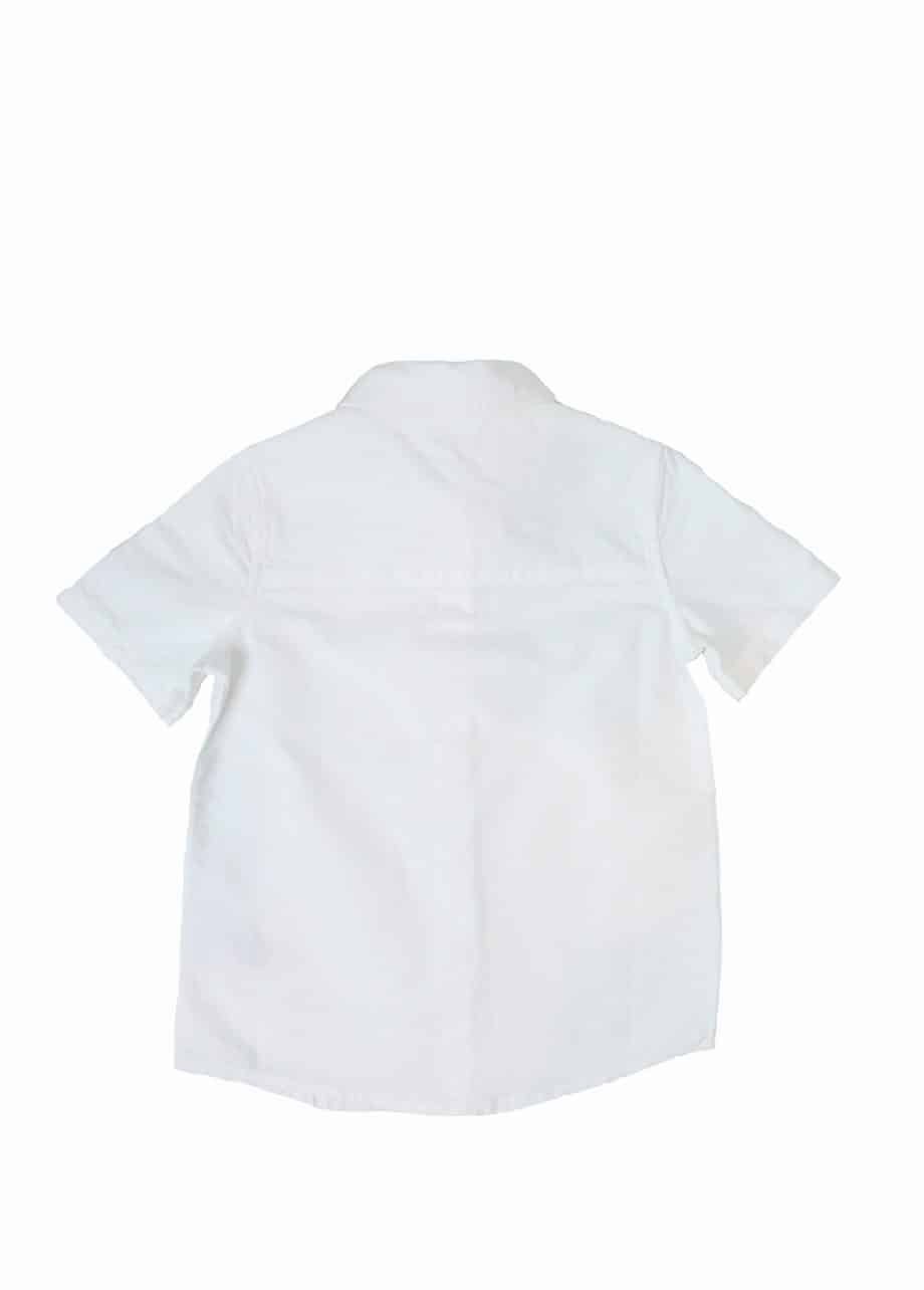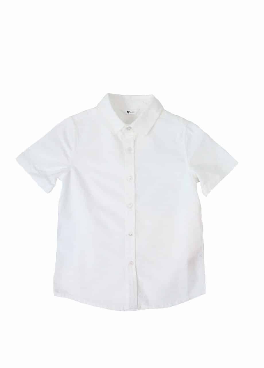 Vaik. marškiniai, baltos spalvos, trumpomis rankovėmis, užsegimas sagutėmis, atlenkiama apykaklė, tiesaus kirpimo.