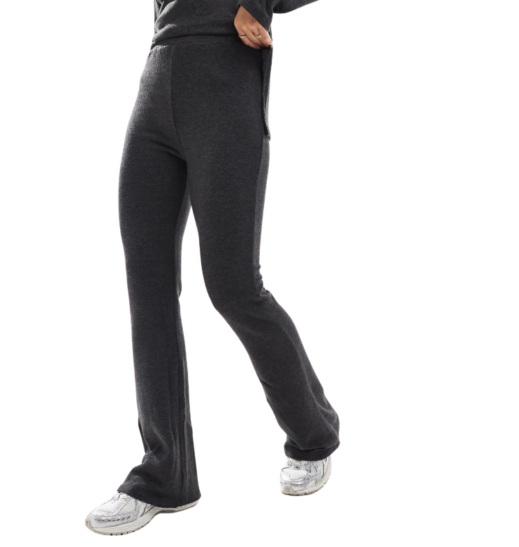Mot. kelnės, tamsiai pilkos splavos, elastinė juosmens juosta, platėjančio kirpimo.