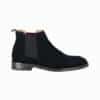 Vyr. aulinukai, juodos spalvos, apvali batų nosis, be užsegimo, elastingi įdėklai, plokščias padas, blokinis kulnas.