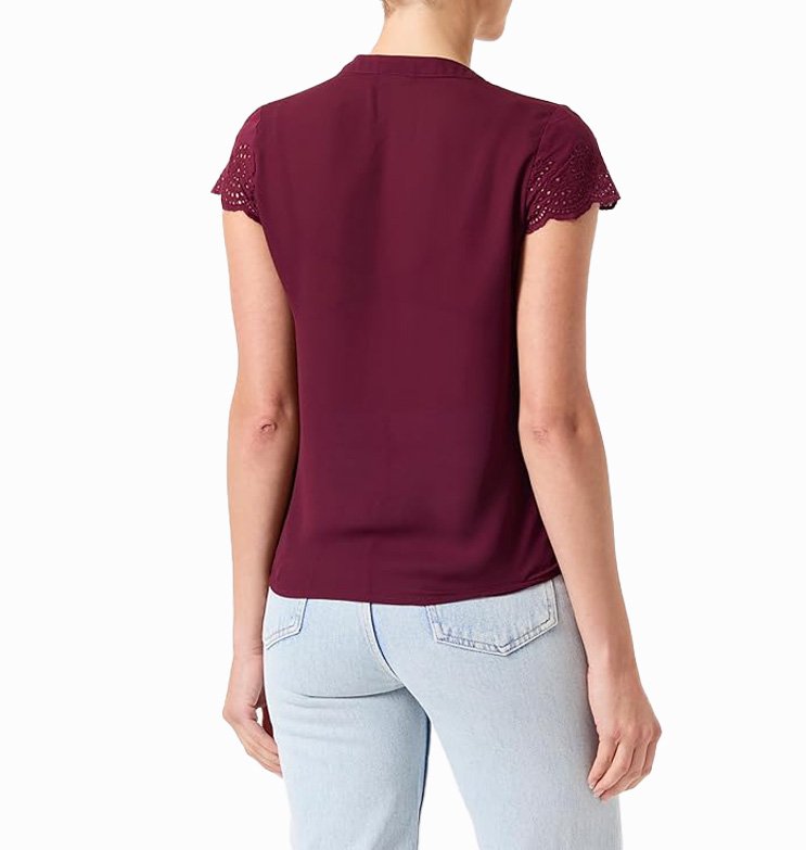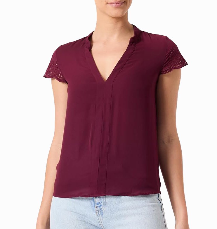 Mot. palaidinė, vyšninės spalvos, trumpomis rankovėmis, V formos iškirptė.