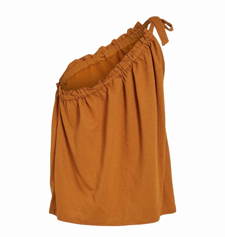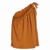 Mot. palaidinė, rudos spalvos, be rankovių, atvira kaklo iškirptė, laisvo kirpimo, vienspalvio rašto.
