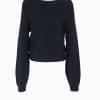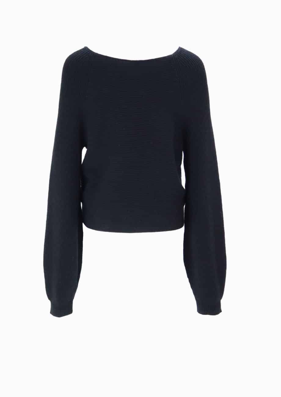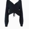 Mot. megztinis, juodos spalvos, V formos iškirptė, žemo sukirpimo, rankovės ypač ilgos.
