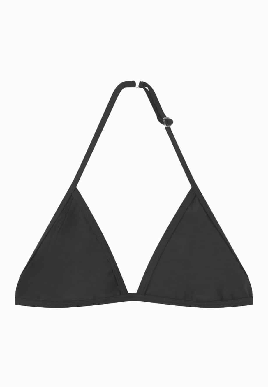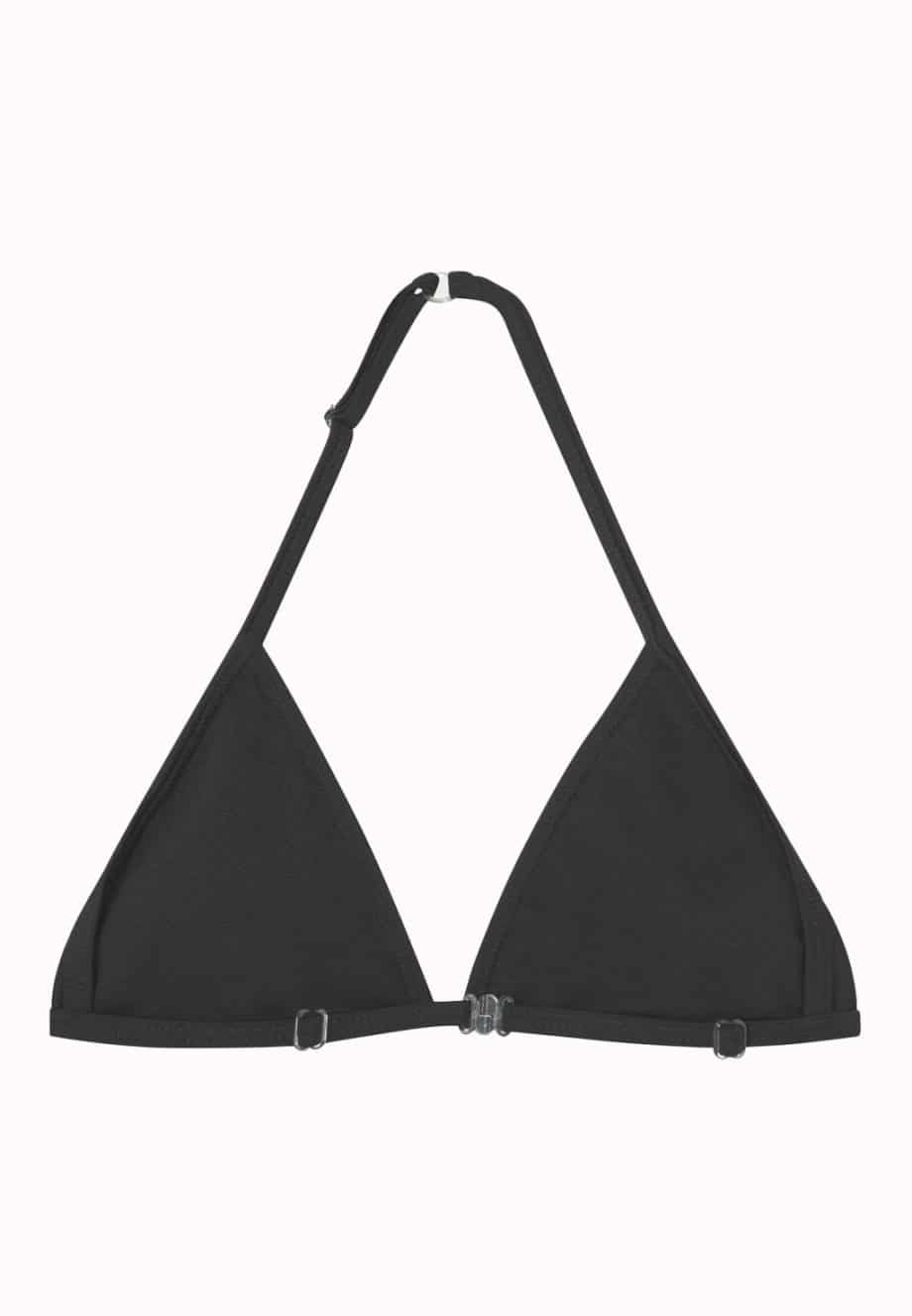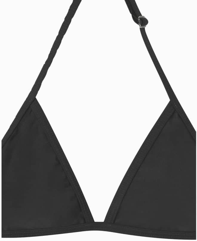 Mot. maudymosi liemenėlė, juodos spalvos, trikampio formos, užsegimas sagtimi, su petnešėlėmis, reguliuojamas dydis.