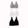 Mot. liemenėlės, juodos/ baltos/ pilkos spalvos, be lankelių, elastinė juosta, kvėpuojanti ir greitai džiūstanti medžiaga, gerai laiko krūtinę, išimami kaušeliai, tinka tiek sportui, tiek kasdienai. Pakuotėje 3vnt.