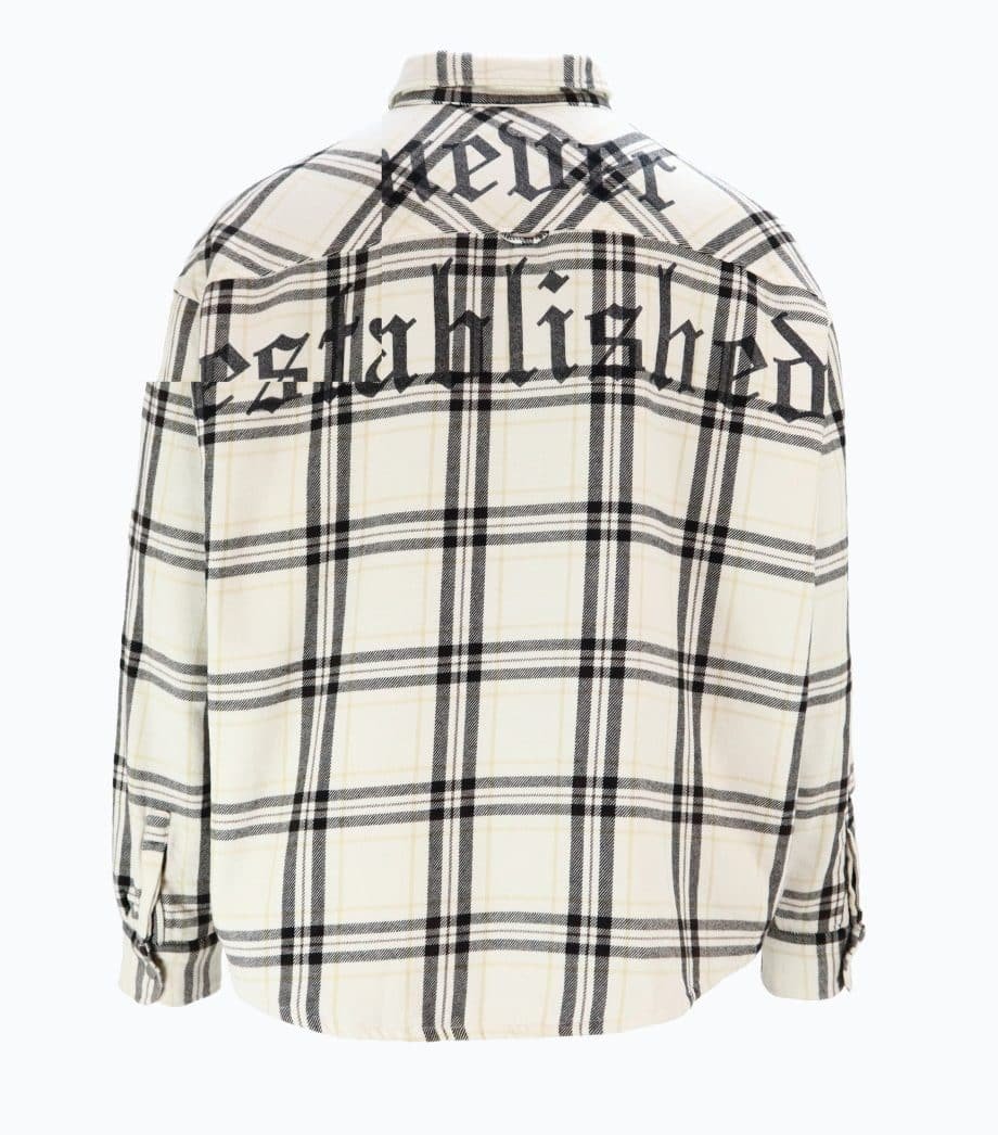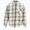 Vyr. marškinių tipo striukė, balškvos spalvos, ilgomis rankovėmis, tiesaus kirpimo, kento apykaklė, užsegimas užtrauktuku, sportiški rankogaliai, šoninės kišenės, logotipo detalė.