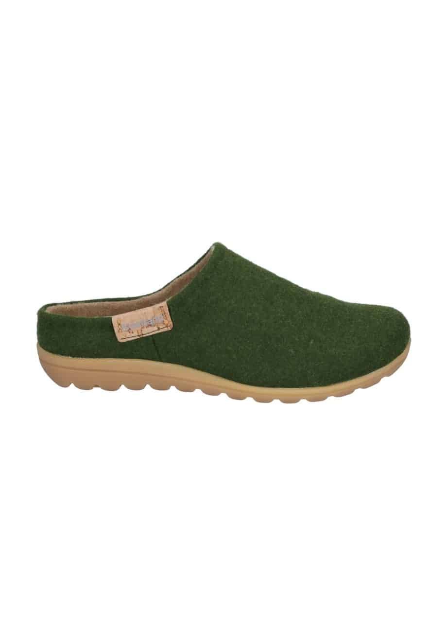 Šlepetės, žalios spalvos, apvali noselė, kulnas žlokščias, be užsegimo, šiltos.