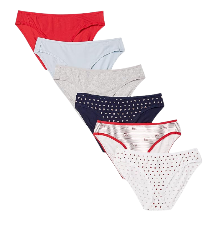 Mot. medvilninės apatinės kelnaitės, vidutinis juosmuo, pakuotėje 6 spalvų dizainas.