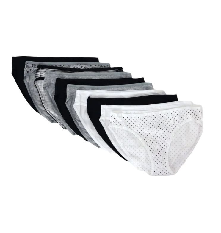 Mot. medvilninės apatinės kelnaitės, vidutinis juosmuo, pakuotėje 10vnt., įvairių spalvų dizainas.