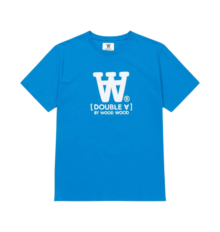 Vaik. marškinėliai, mėlynos spalvos, apvali kaklo iškirptė, trumpos rankovės, spausdintas logotipas.