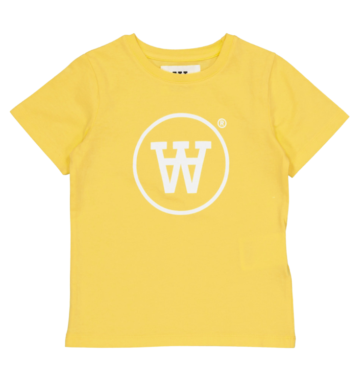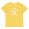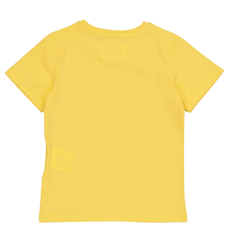 Vaik. marškinėliai, geltonos spalvos, trumpomis rankovėmis, apvali kaklo iškirptė, spausdintas logotipas.