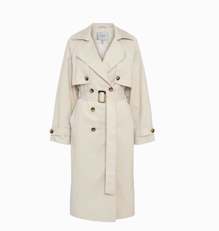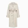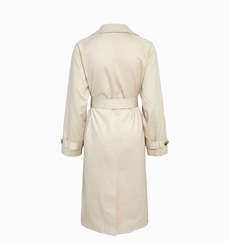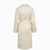 Mot. paltas, smėlio spalvos, ilgomis rankovėmis, V formos iškirptė, juosmens diržas, užsegimas sagomis, šoninės kišenės.
