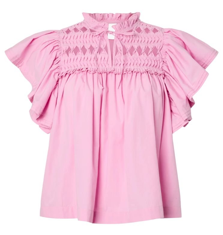 Mot, rožinės spalvos puošni palaidinė trumpomis rankovėmis.