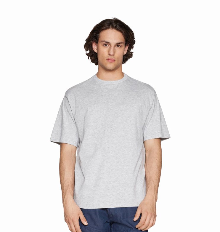 Vyr. marškinėliai, pilkos spalvos, trumpomis rankovėmis, apvali kaklo iškirptė.